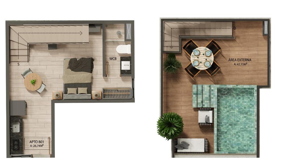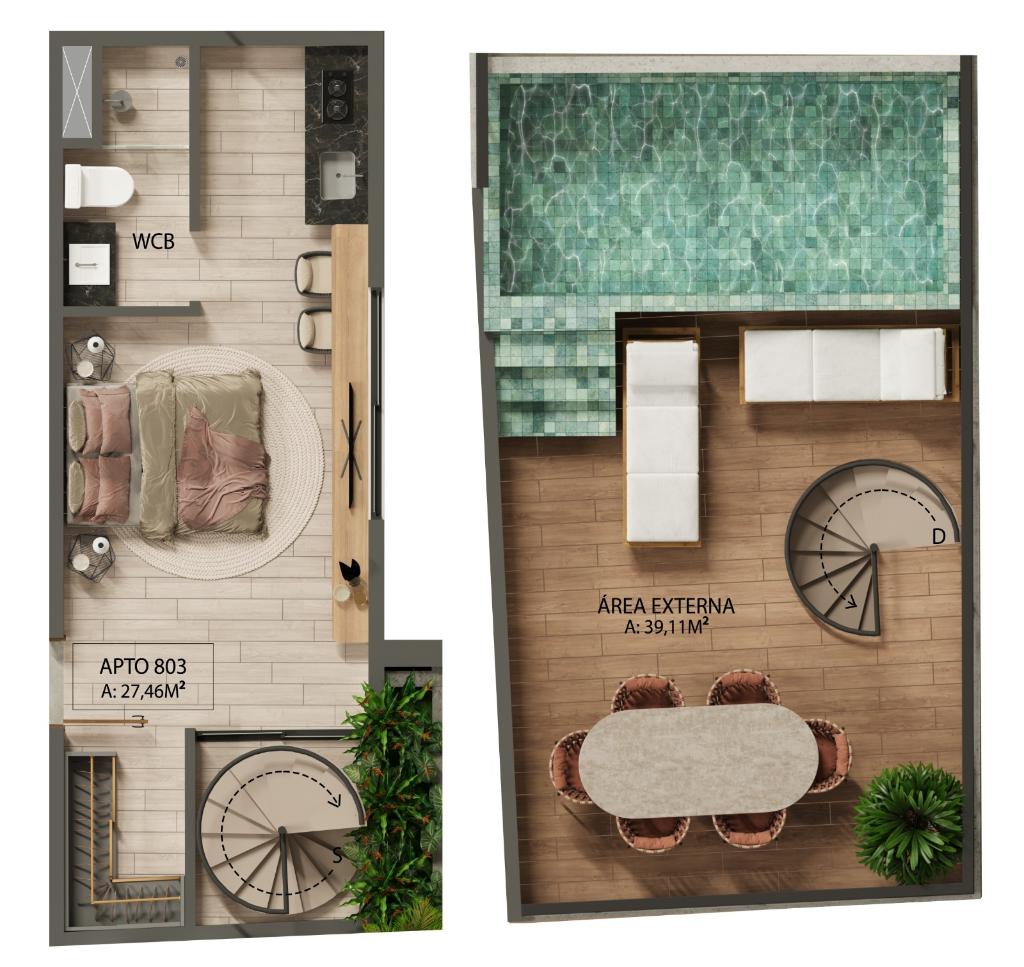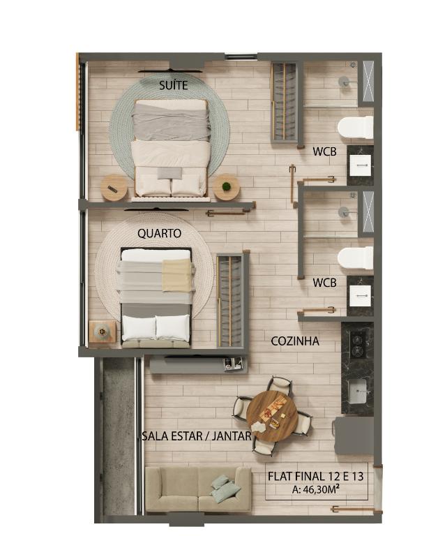 área privativa: 46,30m²,
