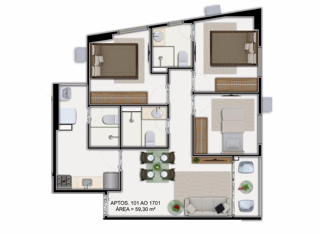 área privativa: 59,30m²,