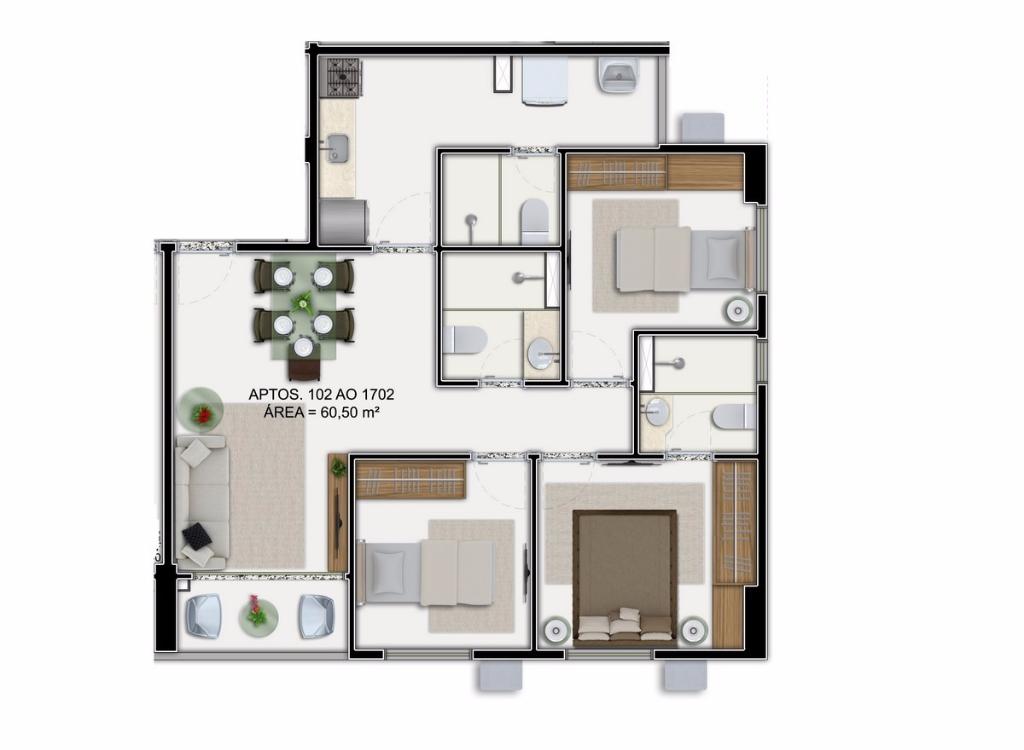 3 Quartos sendo 1 suíte,