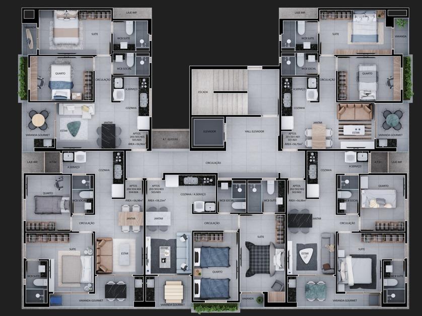 área privativa: 56,81m²,
