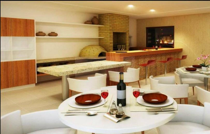 2 Quartos sendo 1 suíte, 1 banheiro social, 1 vaga na garagem, 1 salas p/ 2 ambientes (estar, jantar), área privativa: 58,34m², Área de serviço , Cozinha, Varanda,
