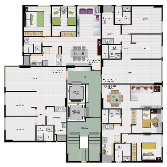 área privativa: 47,98m²,