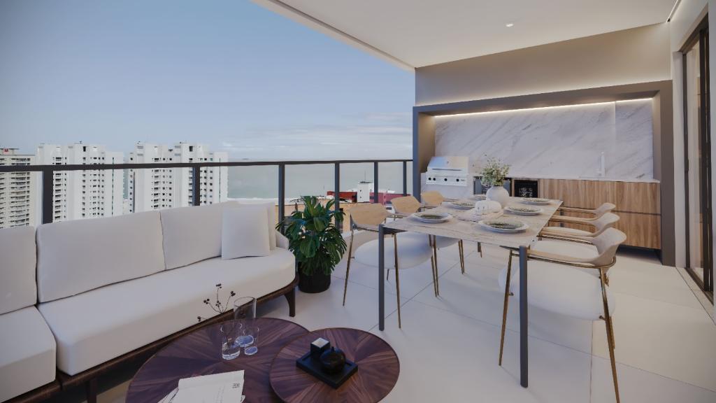 3 Quartos sendo 3 suítes, 1 banheiro social, 3 vagas na garagem, 1 salas p/ 2 ambientes (estar, jantar), área privativa: 180,02m², Área de serviço , Cozinha, Lavabo, Telefone, Varanda, WC serviço,