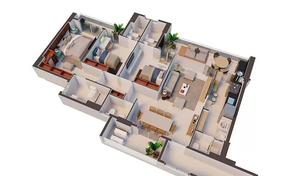 3 Quartos sendo 3 suítes,