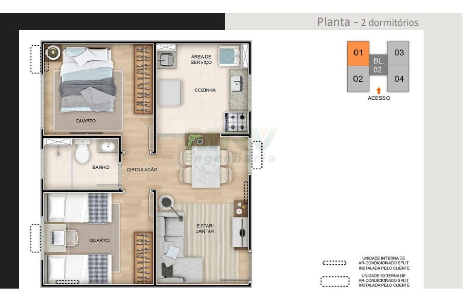 Mais que um apartamento, o novo jeito MRV de viver. O Caminho das Orquídeas oferece: lazer equipado, bicicletas compartilhadas, sistema de segurança, tomada USB, energia solar, laminado na sala e quartos e muito mais
