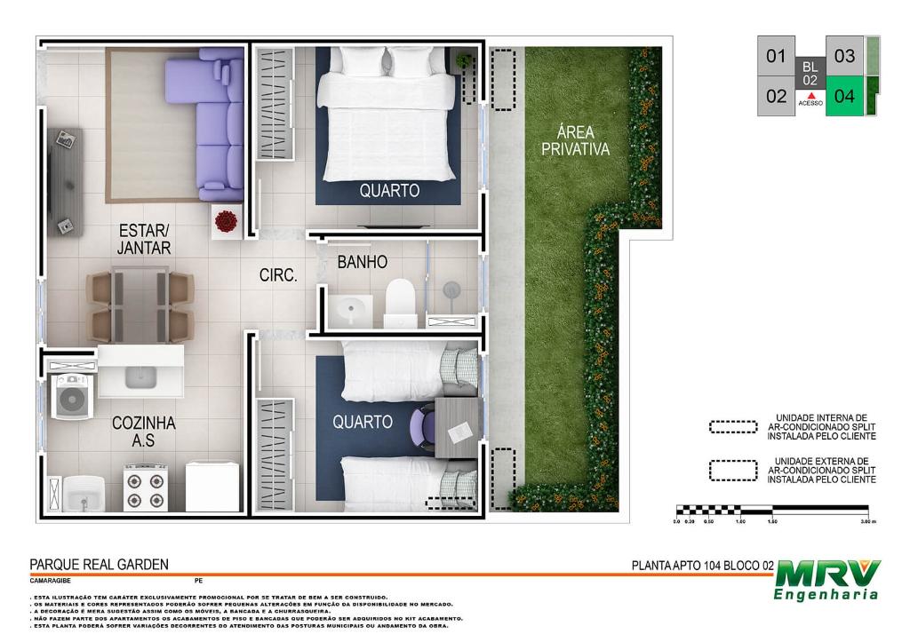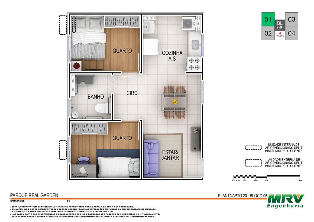 Mais que um apartamento, o novo jeito MRV de viver. O Real Garden oferece: lazer equipado, bicicletas compartilhadas, sistema de segurança, tomada USB, energia solar, laminado nos quartos e muito mais.