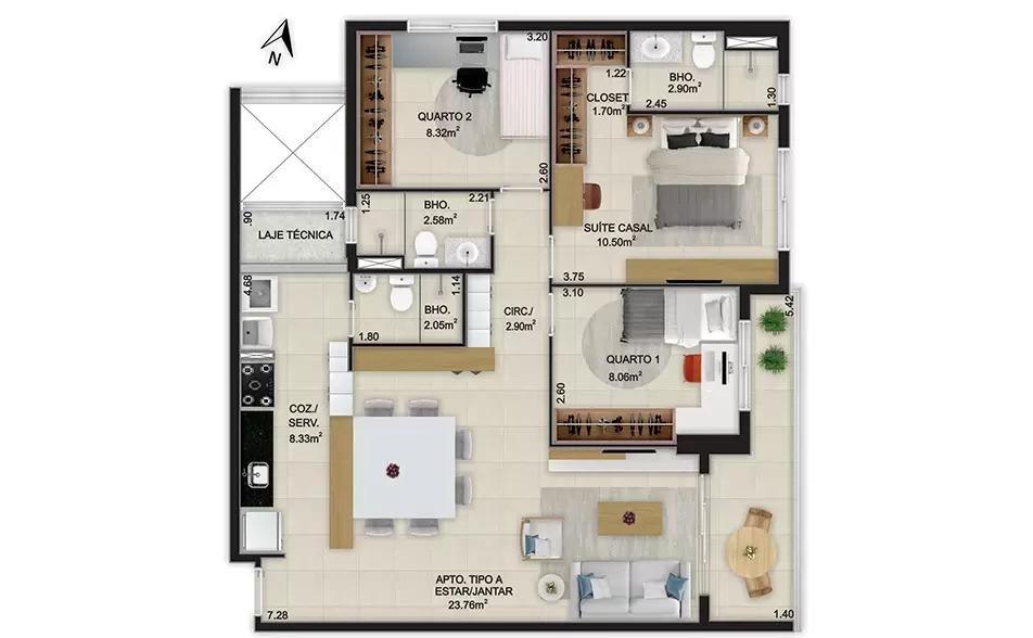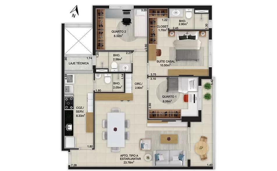 área privativa: 88,89m²,