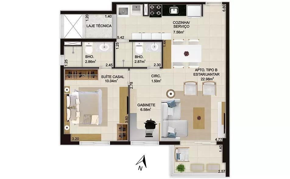 área privativa: 61,20m²,