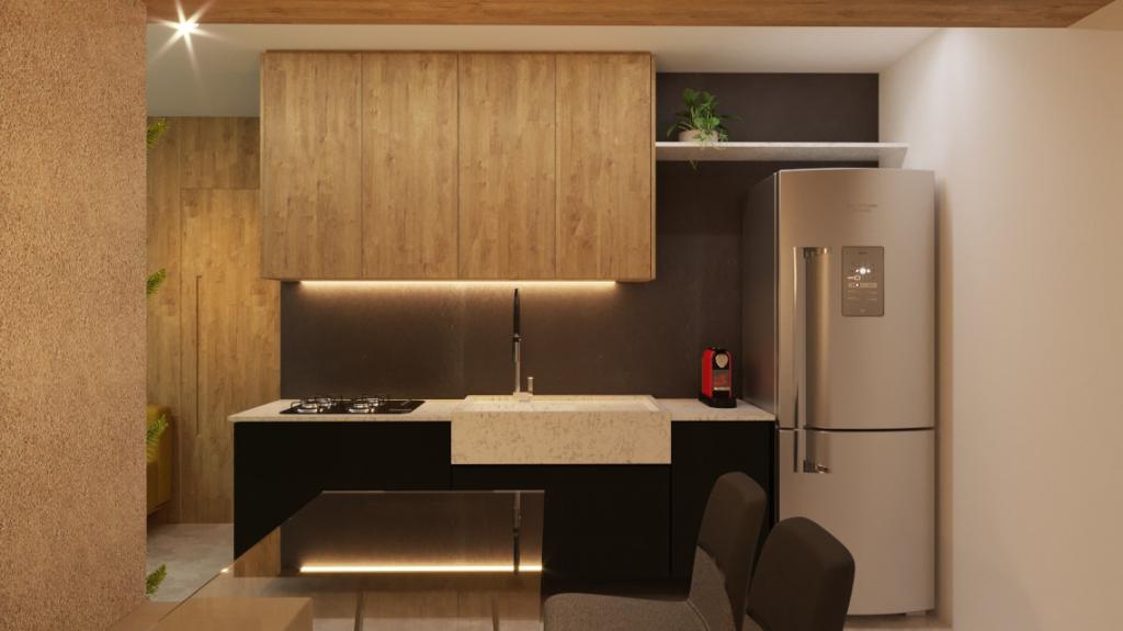 1 Quarto, 1 banheiro social, 1 vaga na garagem, 1 salas p/ 2 ambientes (estar, jantar), área privativa: 34,24m², Cozinha,