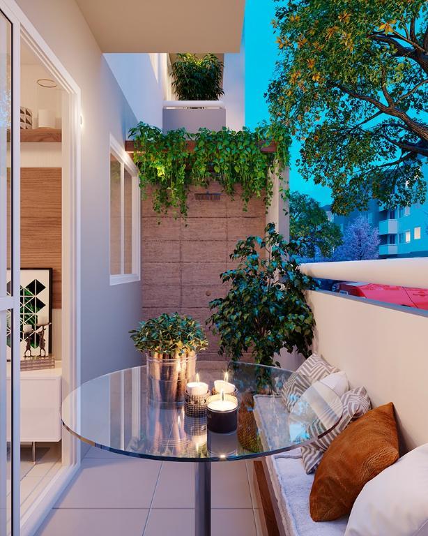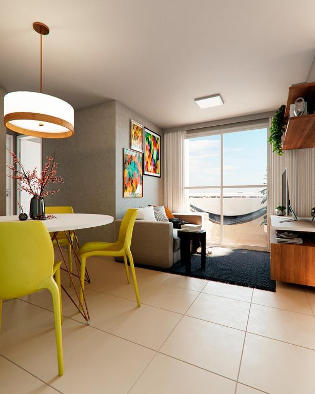 2 Quartos, 1 banheiro social, 1 salas p/ 2 ambientes (estar, jantar), área privativa: 43,70m², Cozinha, Varanda,