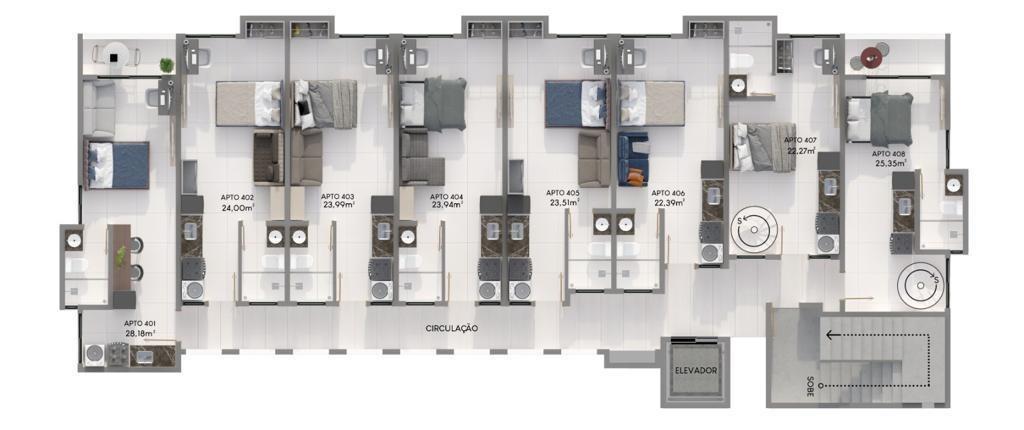 área privativa: 23,99m²,