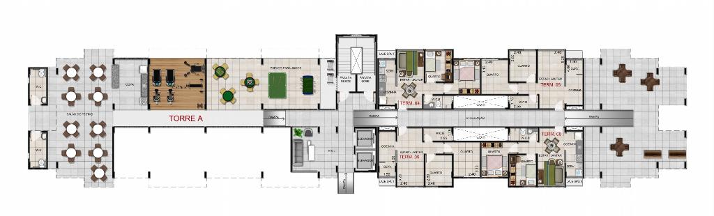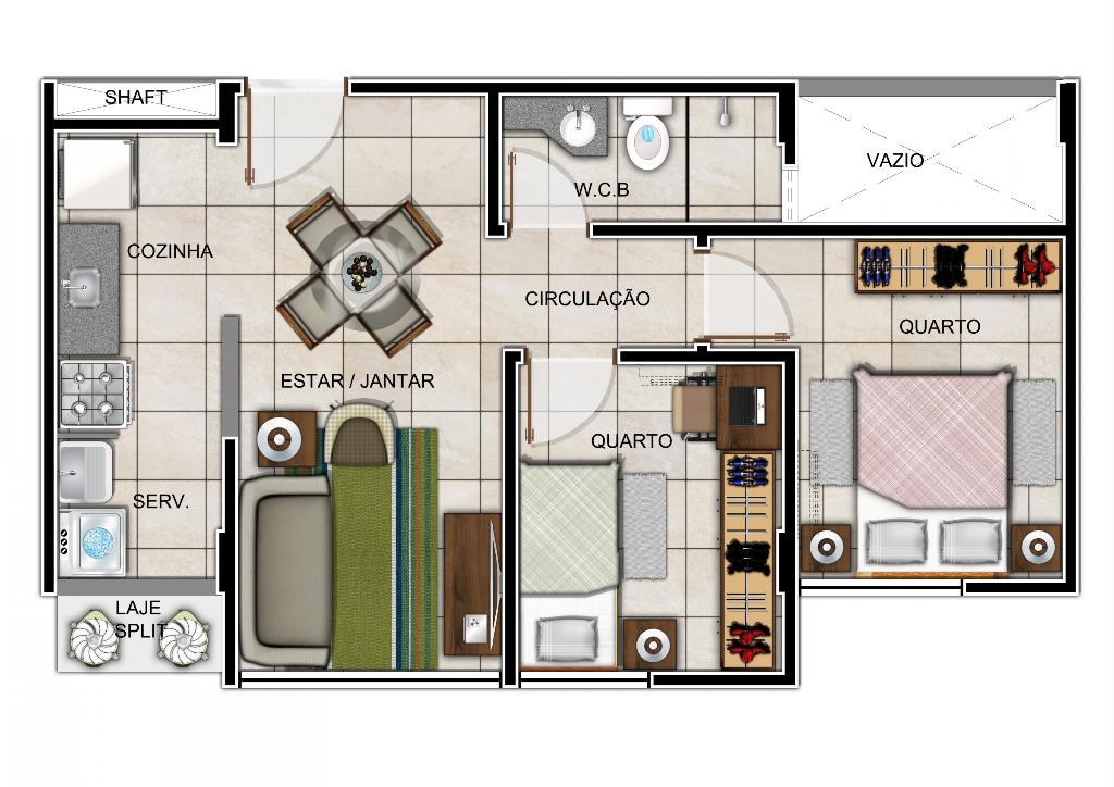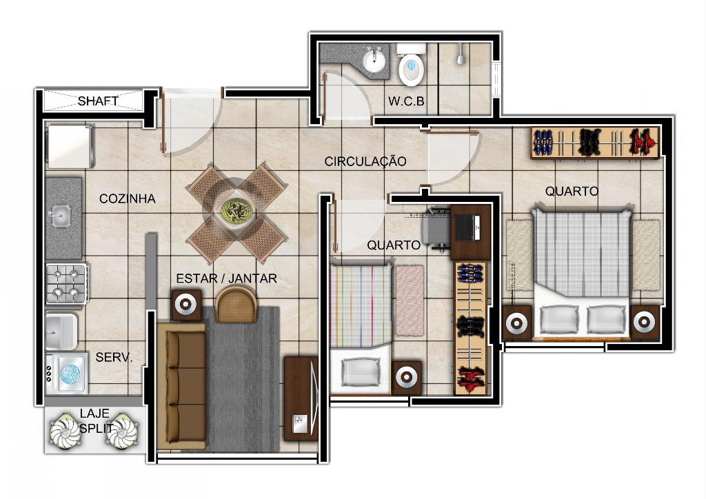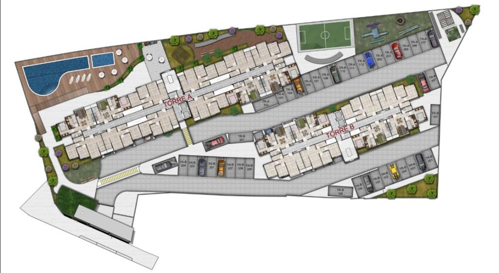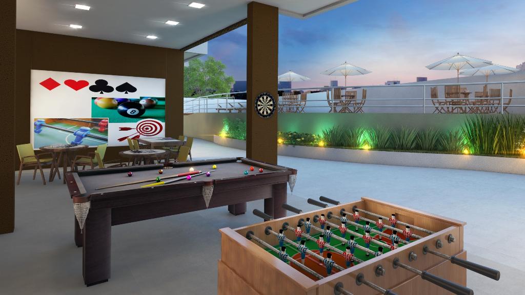 Com 2quartos e uma área de lazer completíssima, conta com salão de festas, playground, minicampo, espaço fitness, piscina e churrasqueira.