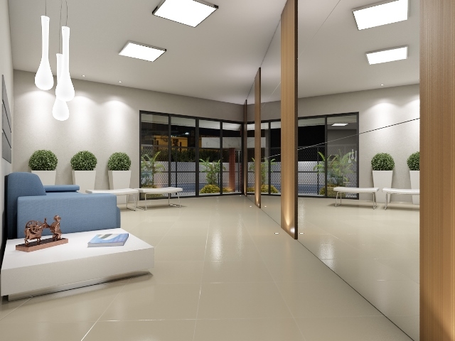 Varanda, sala para 02 ambientes, 03 quartos sociais (1 suíte), wc social, cozinha, área de serviço, 01 vaga de estacionamento, piso todo em cerâmica, balcões em granito, aterramento p/ computador, antena coletiva, etc. ÁREA PRIVATIVA : 59,00m2