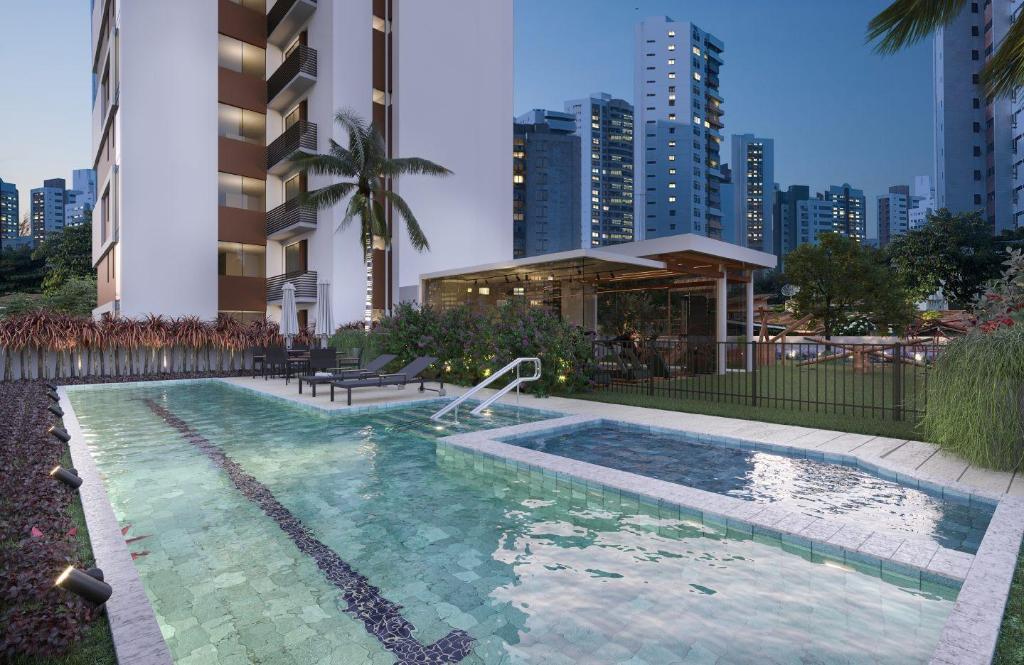 Casa Jardim, Coberturaa com terraço gurmet e piscina exclusiva, fechadura digital, tomada usb, automação luminotécnica nos apartamentos, sistema de água mineral em todos os aptos, wifi nas áreas comuns,estação para recarga de autmóveis elétrics, espaço para descarte seletiv, irrigação autmatizada com reúso de água, esquadrias com conforto térmico e acústic, sala de encomendas e recebimento de delivery/entregas e porcelanato 1,20 x 1,20, pia esculpida e ralo linear oculto