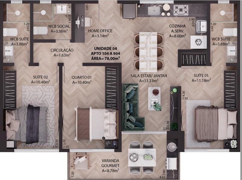 2 Quarto(s) 74,90 m²