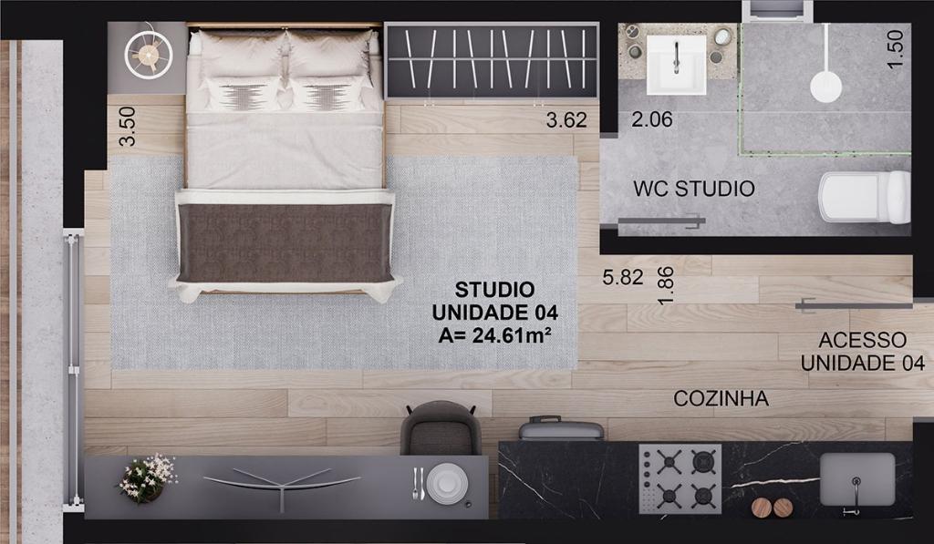 1 Quarto(s) 42,97 m²