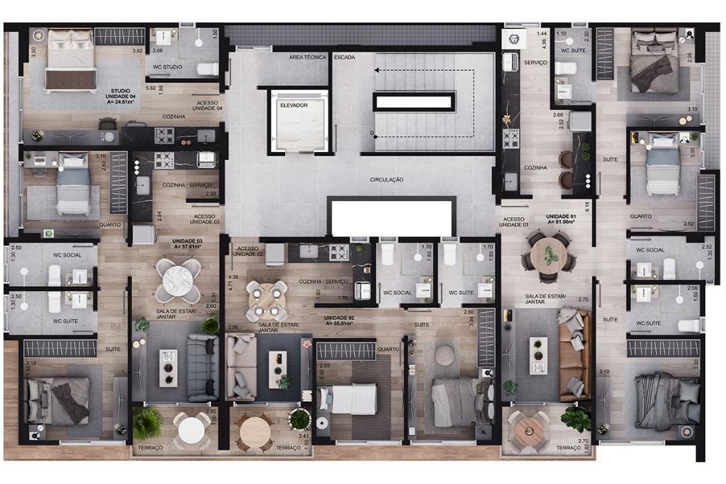 • 4 unidades por andar
