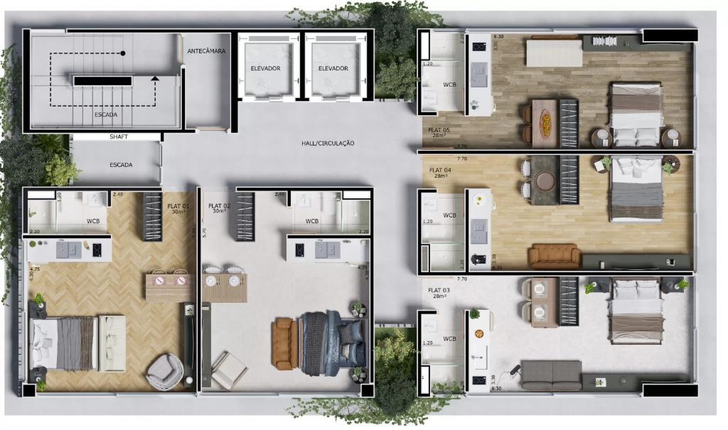 • 5 unidades por andar