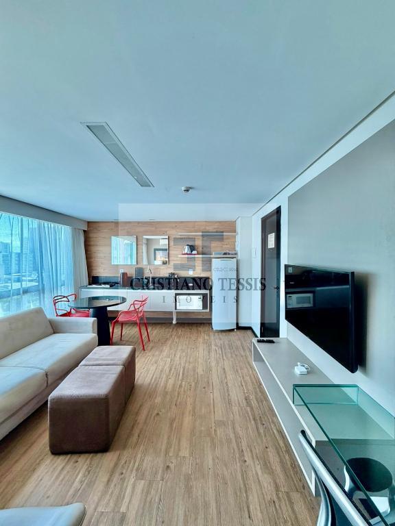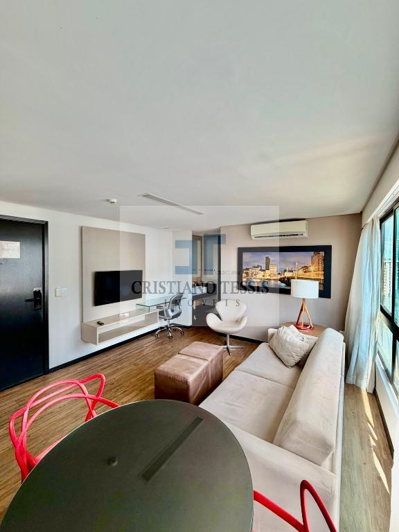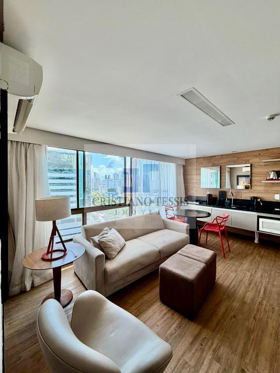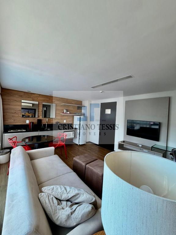 Flat super charmoso, com 1 quarto, sala e escritório, todo mobiliado, com cozinha e banheiro.