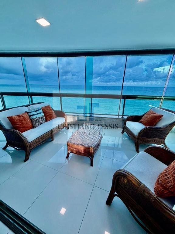 <br> A sala para 4 ambientes com uma varanda em "L", oferecendo uma área social perfeita para receber e apreciar a paisagem única da Praia Boa Viagem, além de ar-condicionado central na sala, garantindo mais conforto térmico e sofisticação.