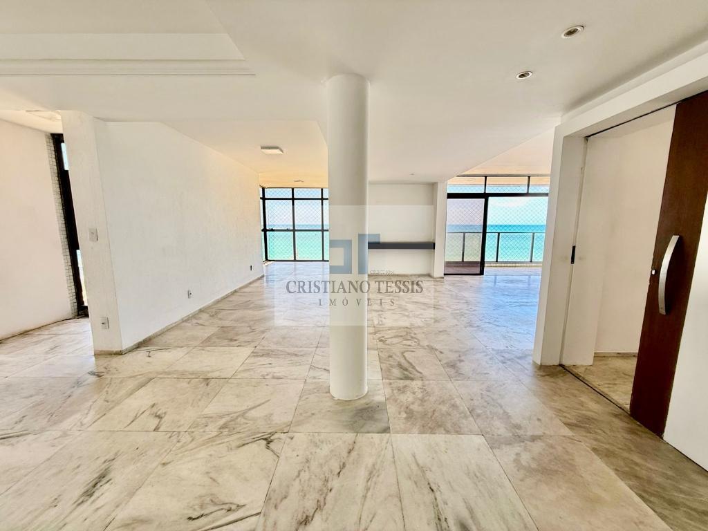 <br>No andar superior, a cobertura oferece uma sala ampla integrada a um terraço com área gourmet. A piscina existente foi embutida, mas a estrutura permanece caso o novo proprietário deseje reinstalá-la. Subindo mais um nível, encontra-se um rooftop frente mar, um espaço único para contemplar a vista e criar ambientes exclusivos.