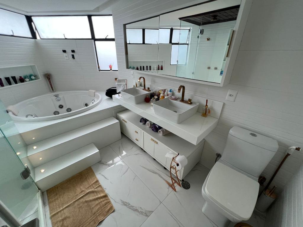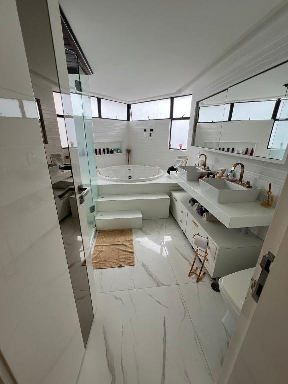 <br>Sala pra 3 ambientes grande, varanda gourmet, Lavado (wc) sala , 4 suítes ? Reformado pra 3 suítes sendo uma master com closet , piscina , sauna , cozinha , área de serviço tem wc e quarto de empregada ? Sim