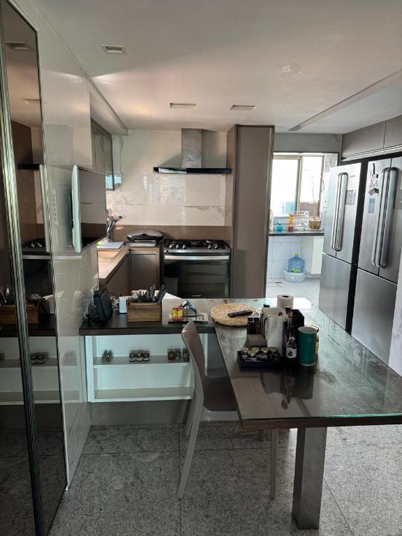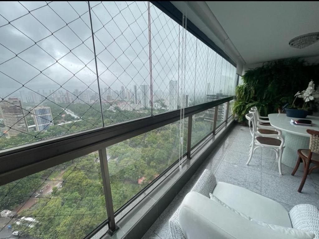 Excelente localização em frente do Parque da Jaqueira alto padrão nascente andar alto mto ventilado 208m² área útil varandão cortina de vidro vista para o Parque da Jaqueira, piso porcelanato sala 4 ambientes 4 suites sendo uma master closet hidro apto todo pronto ambientado fino acabamento todos armários projetados lavabo copa cozinha toda pronta despensa área serviço dependência completa empregada piscina adulto infantil aquecida salão de festas salão de jogos playground quadra poliesportiva academia extensa área verde 3 vgs aceita financiamento.