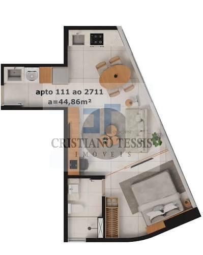 <br>Não perca a oportunidade!! São 44,86m² bem distribídos, com 1 quarto, bannheiro, sala, copa e cozinha.