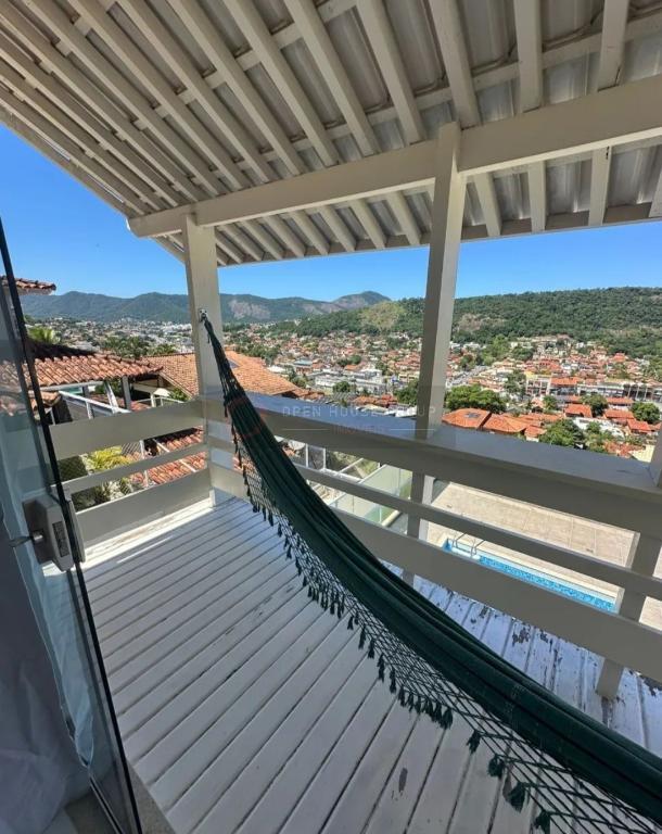 <br>Uma das suítes com varanda e vista incrível para o mar