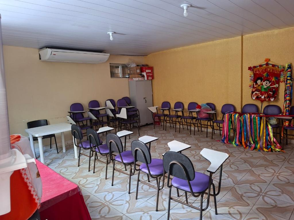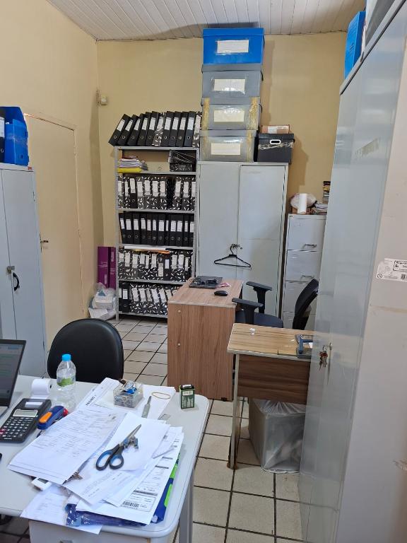 AMPLA CASA COM 2 PVIMENTOS, ANDAR TÉRREO: RECEPÇÃO, SALA DE REFIEÇÃO/COZINHA, SALA COM ACESSO AO SÓTON, SALA DE FUNCIONÁRIOS, 1 WC. 1 AUDITÓRIO, 1 DEPÓSITO, 5 VAGAS DE GARAGEM.